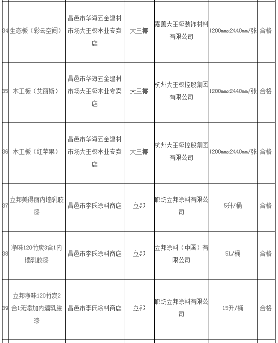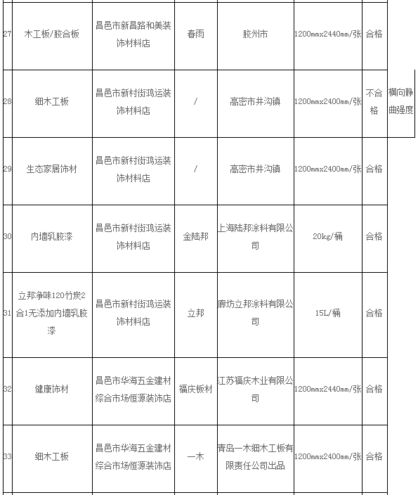 潍坊市工商局公布装饰装修材料抽检不合格名单