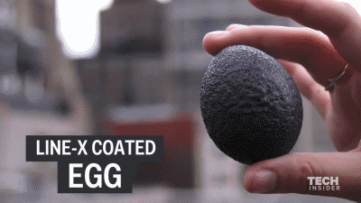 一枚刷了Line-X的生鸡蛋掉地上,居然弹跳起来!