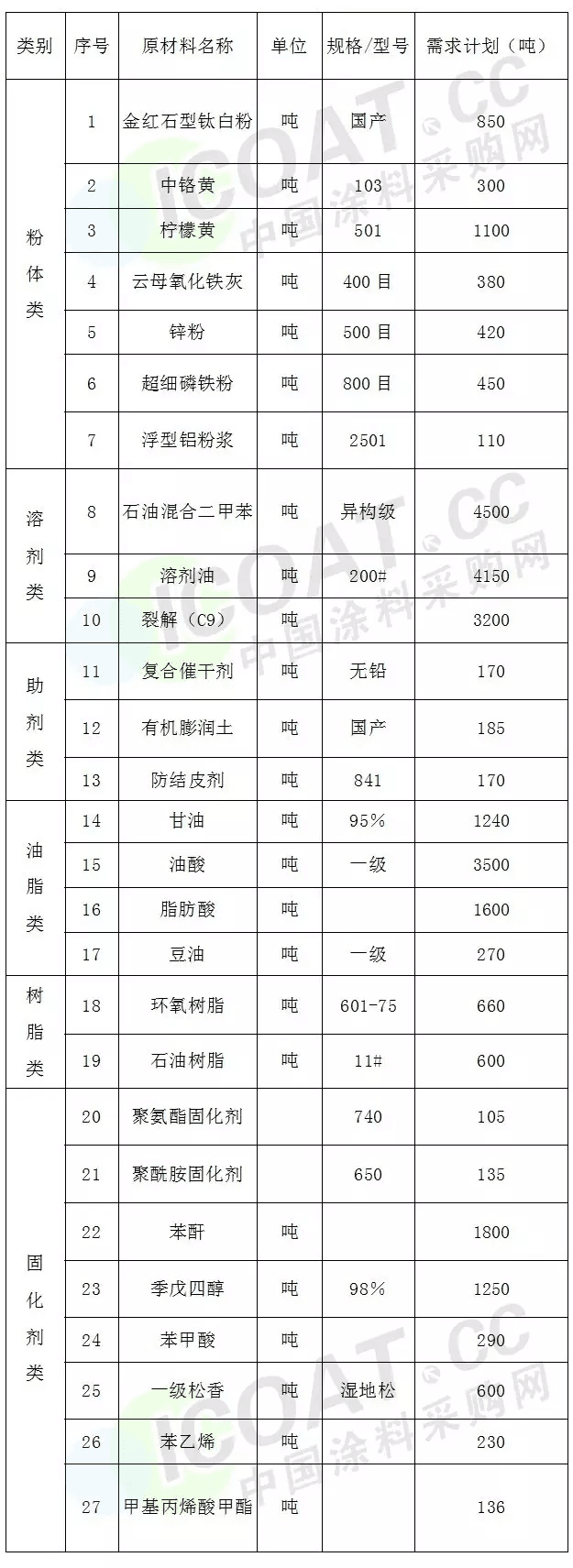 涂料企业集中委托中国涂料采购网为其提供高性价比供应商,并在其官网权威发布,具体采购如单如下: