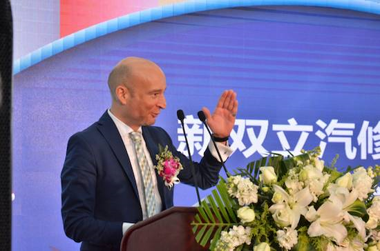 新双立汽修售后总经理董杰致辞,简要介绍了新双立汽修以“我们的产品是服务、我们的产出是安全”的生产理念,凭借着高规格维修工位和德国原装进口维修设备,以及与德国大众保持同步标准的维修工艺水平,于2016年3月,大众汽车(中国)销售有限公司授予新双立集团•锦江店为ADM钣喷样板店。今天,我们选择与巴斯夫合作,是以新双立汽修的优质工艺,搭配着巴斯夫的优质产品,保证我们客户车辆从里到外的、全面的“重焕新生”。更值得说明的是,新双立汽修从今天起将全面使用巴斯夫鹦鹉90系列的水性漆,这也是巴斯夫鹦鹉最顶级的水性漆。单个钣面的用户售价最低350元,并且新双立汽修为我们的客户提供钣喷终生质保的服务保障,打消您的所有后顾之忧。此次和巴斯夫的全面战略合作,将是我们双方进行优势互补,服务创新的进一步提升,相信今后的合作必将获得更大的成果。
