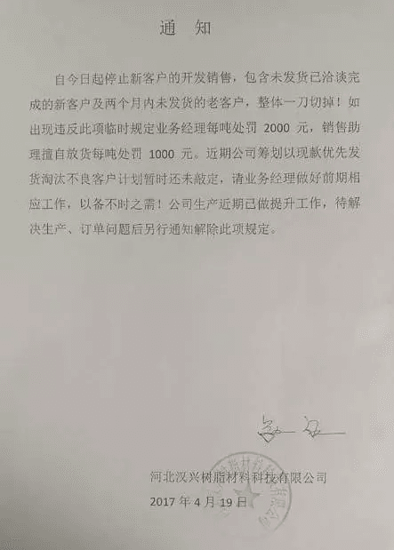 河北汉兴树脂通知