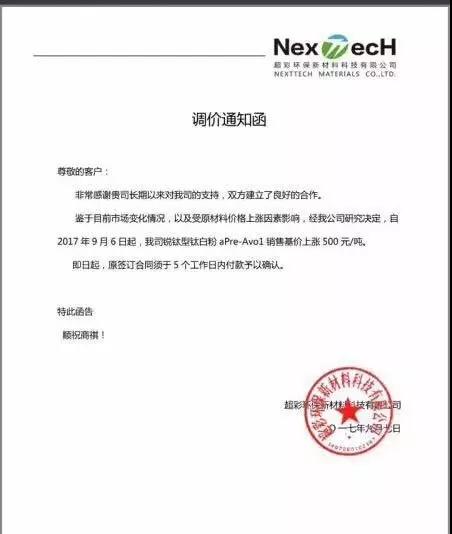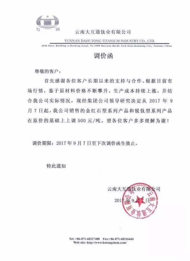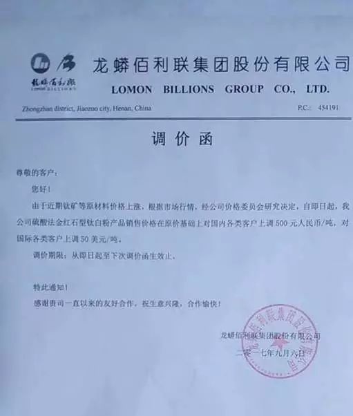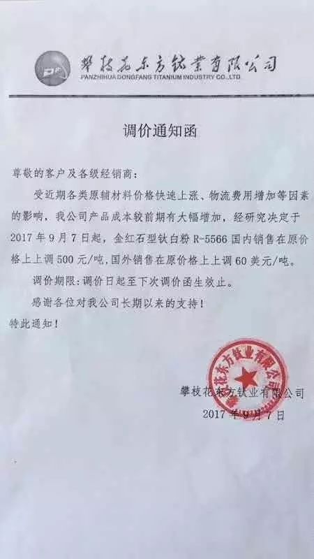【中国涂料采购网】近日国内钛白粉龙头企业龙蟒佰利再次发布涨价通知,此轮涨价已是年内的第七次调价。