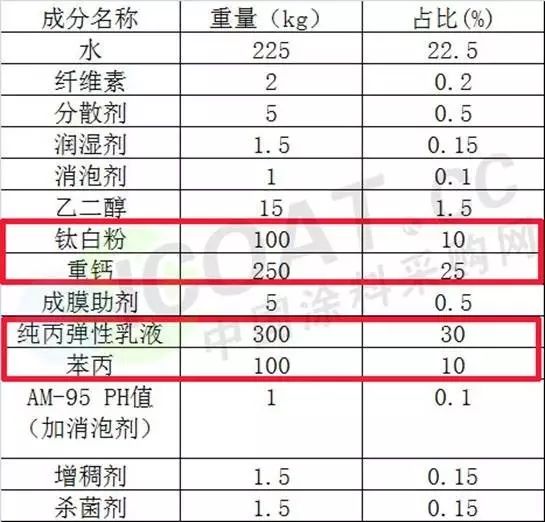 类似杨先生的这种情况,在涂料及相关行业最近也有发生。原材料价格上涨厉害,而涂料成品价格又涨不上去,所以,很多涂料生产厂家只能在自己能支撑的能力范围内消化原材料上涨而增加的成本,而一旦消化不了,则宁可失去客户也要保住自己不亏本。今天涂料采购网,以一个中型涂料厂的某建筑涂料配方为例,阐述原材料上涨对涂料成品的影响(以下只是某一个配方,不代表所有配方的比例):