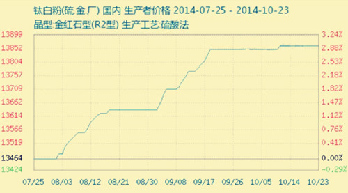 【中国涂料采购网】时至10月下旬,国内钛白粉交投市场利空气氛较重,下游需求低迷未改,已有大型生产商利用返利等促销手段变相“软化”价格,“软化度”在100-400元/吨之间,国内其他生产商纷纷保价,此举或只是一厢情愿,随着“软化”面积的逐步扩大,加之年底资金回笼压力较大,付款较好的下游客户或得到更大实惠。少数生产商为减轻自己库存压力,采取移库至代理商,随之赋予代理商一定的价格商谈空间,故此经销商生产商化,根据库存自行定价也比较普遍。此外,据攀枝花市安全生产监督管理局官网报道,钒钛高新技术产业园区海峰鑫化工有限公司“10.20”煤气发生炉发生爆炸事故,目前暂无人员伤亡报道,预计对钛白粉整体行情影响不大。此外,有传闻称科斯特(Cristal)有意收购国内某钛白粉生产商,双方已就意向展开磋商,2013年科斯特(Cristal)产能近80万吨/年,是全球第三大生产商。目前国内多数硫酸法金红石型和锐钛型钛白粉的主流报价在12100-13900元/吨和9300-10700元/吨(均含税)。
