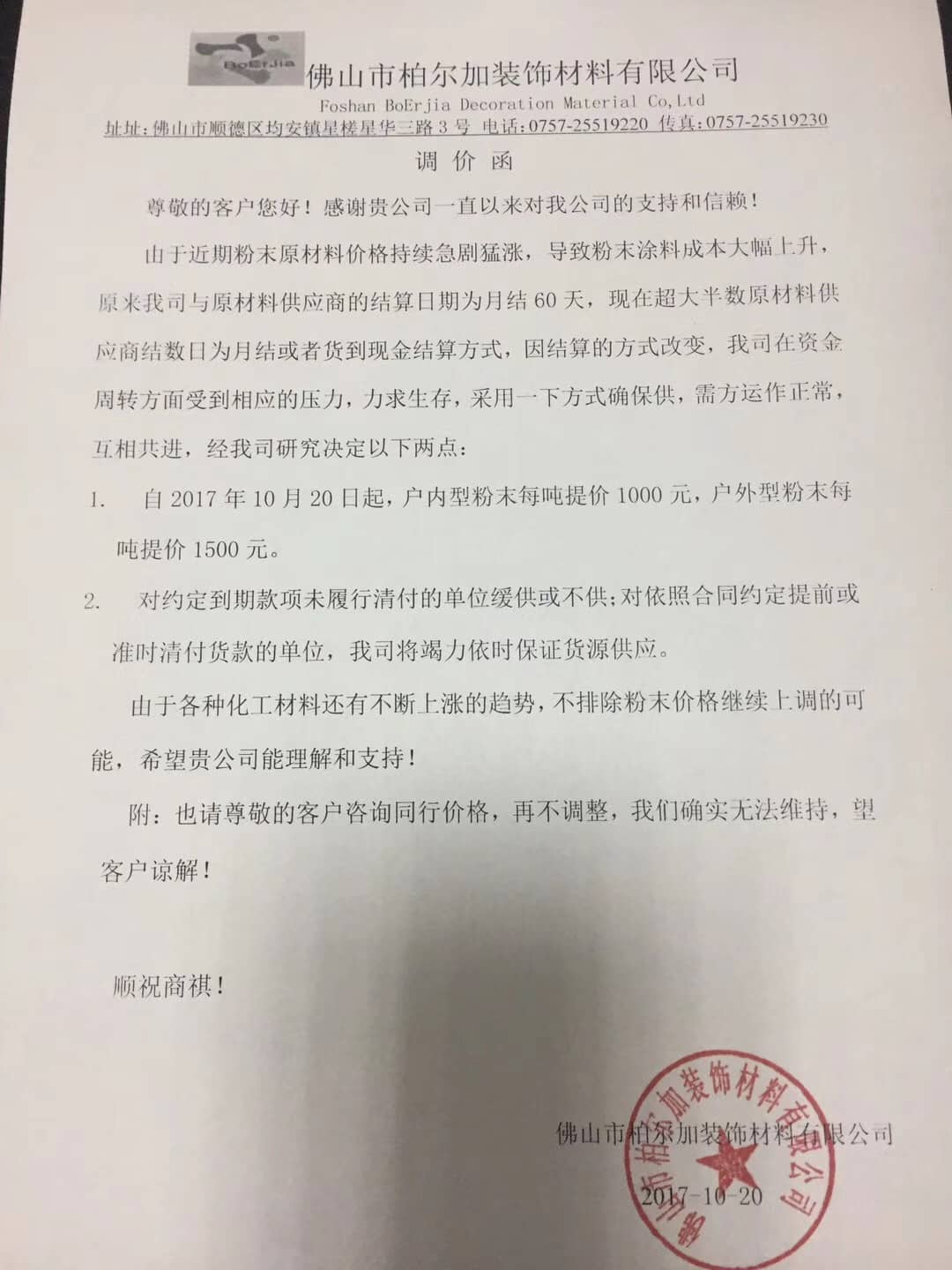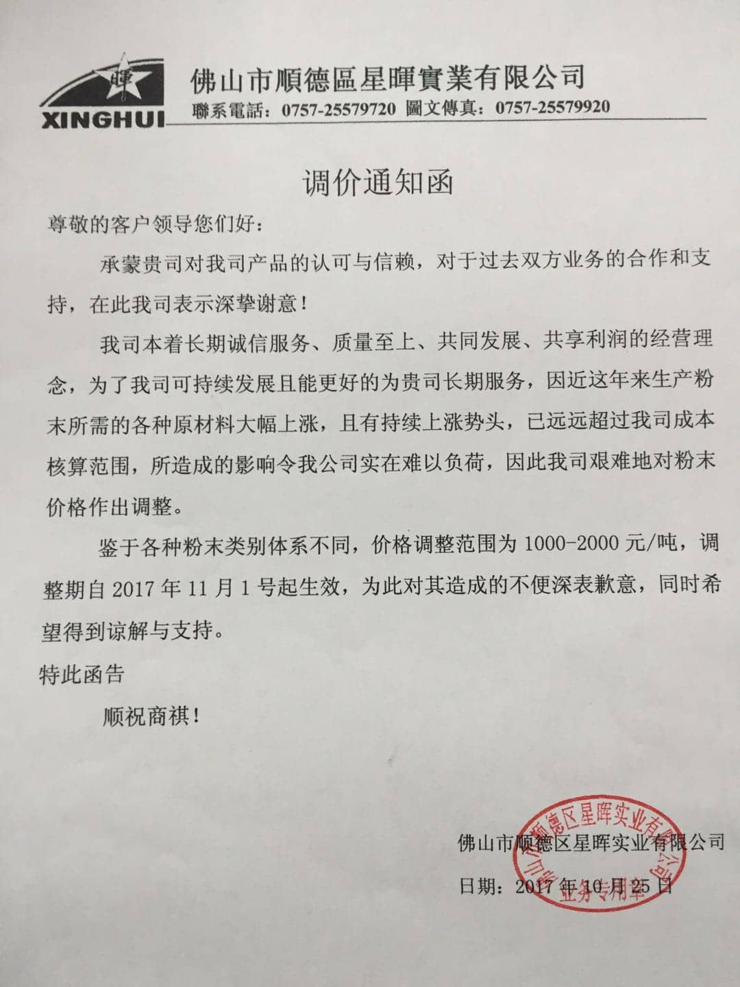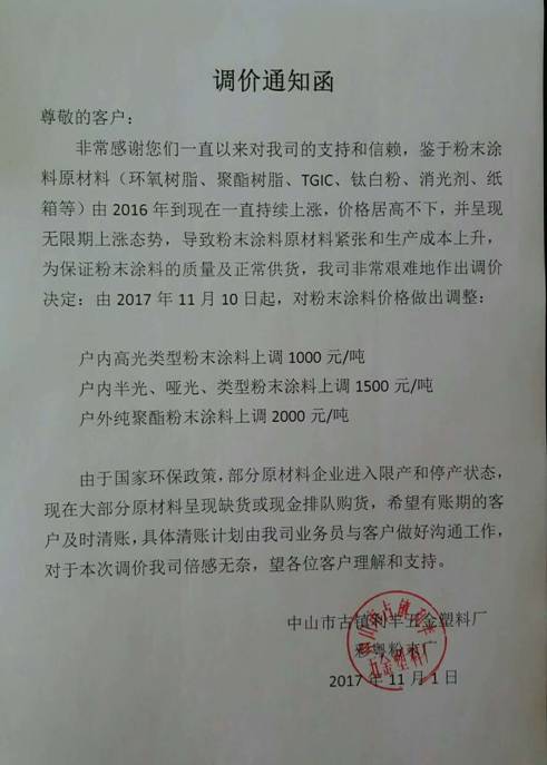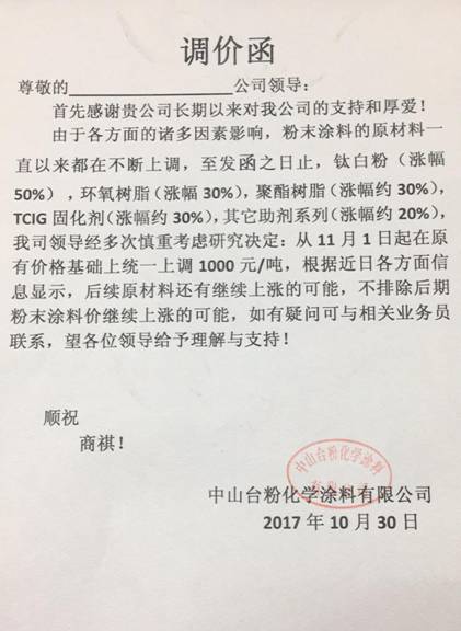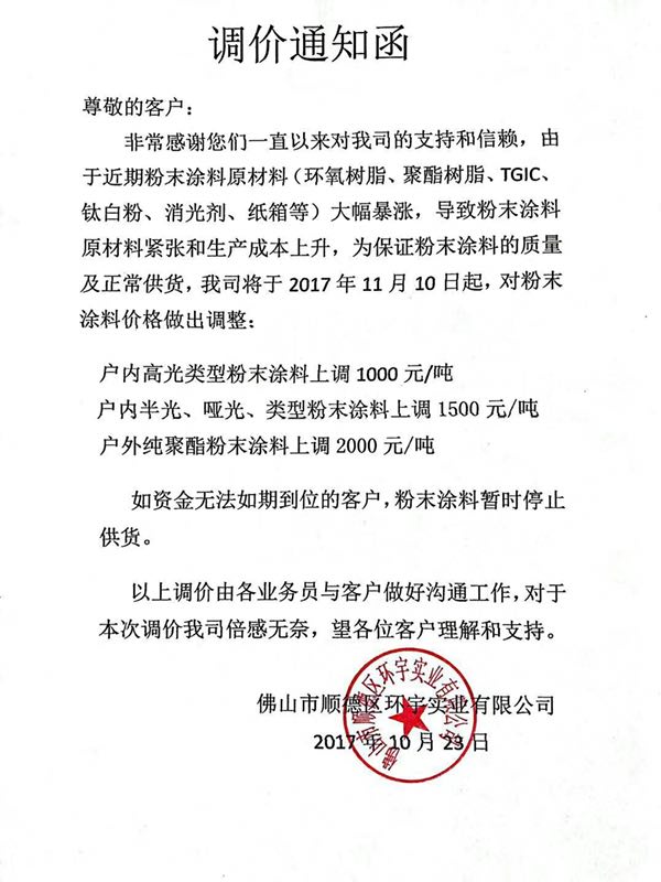 在经历原材料价格涨涨涨!环保查查查的情况下,国内粉末企业的发展情况不容乐观。近日,中国涂料采购网市场运营总监张馨元在调研广东省粉末涂料行业发展时,大部分粉末涂料企业表现出的更多的是诉苦。自2016年以来,全国原材料价格从最早的每月一报价、每周一报价,到目前的每天一报价,甚至于每天报两次价。但是广东地区粉末涂料企业却面临着涨价难的问题,如果涨价,下游用户不理解;如果不涨价,企业的运营成本成倍上涨。