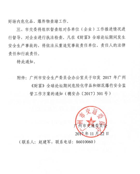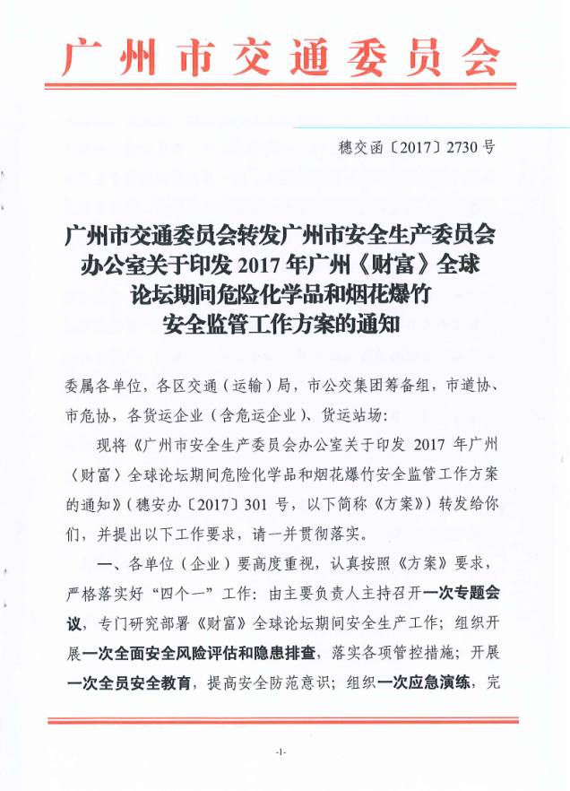 【中国涂料采购网】近期,广州市各大涂料企业向涂料采购网反映,因12月6日-8日,广州市将召开2017年《财富》全球论坛,自11月30日至2018年1月1日,将禁止运输危险化学品。紧急!这一地区涂料产品将禁运1个月(附企业通知),此消息一出,引起了涂料行业数十万人的关注。 近日,广州市交通委会员发布2017年广州《财富》全球论坛期间危险化学品和烟花爆竹安全监管工作方案的通知,明确了会议期间危化品的运输问题,全文如下:
