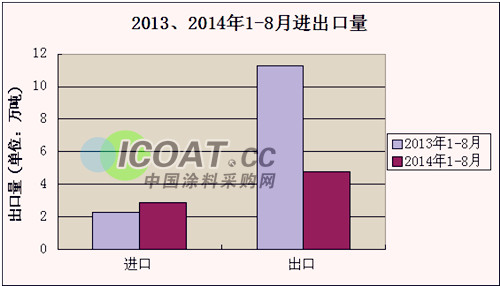 有数据显示,2013年我国1至8月国内丙烯酸累计进口量为2.295万吨,累计出口量为11.296万吨,今年我国丙烯酸累计进口量为2.873万吨,累计出口量为4.758万吨,累计进口量比去年同期增长了25.18%,累计出口量比去年同期却下降了57.88%。进口量的增加,以及出口量的降低也加剧了我国丙烯酸行业的严峻形势。