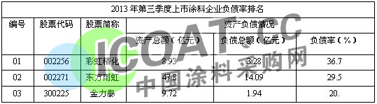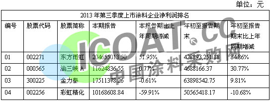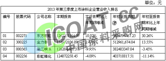 (中国涂料采购网 王立宏/统计整理 转载请务必注明出处!因不同证券交易所对财务报表要求之不同,榜单内之比较或有出入,望广大专业人士、以及资深网友等指正!)