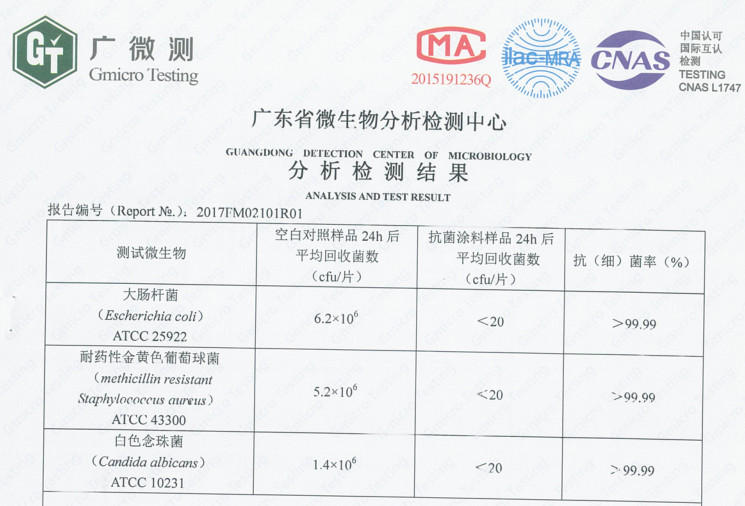 多年以来,内资涂料企业在技术研发方面始终落后外资涂料企业,但是砺剑超能打破了内资涂料企业无法超越外资涂料企业的“神化”。据中国涂料采购网了解,砺剑超能研发的除醛灭菌涂料,防霉抗菌等级达到国家最高等级0级(即显微镜下观察未见生长)。抗霉菌耐久性能0级(UV测试环境下100H)。抗菌率高达99.99%以上(含耐药性病菌)。在涂刷八小时内催化PM2.5 效率达96.7 %,有效催化TVOC(含 PM2.5)、游离甲醛、苯、氨等有害物质。