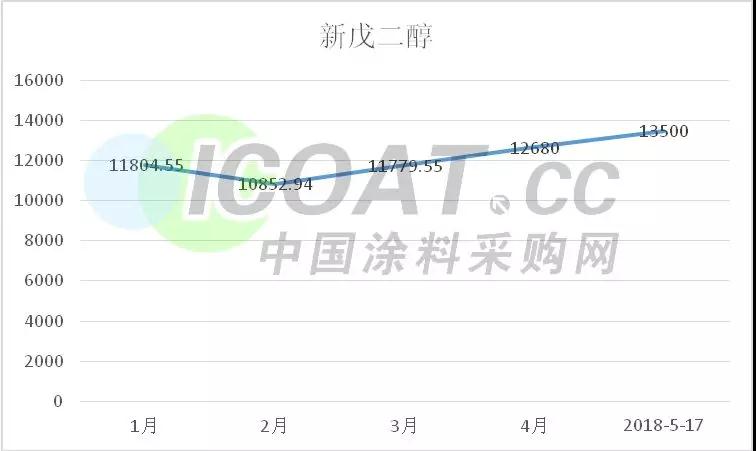 新戊二醇价格从1月份11805元/吨上涨至现在的13500元/吨,上涨2750元/吨,涨幅23.3%,涨幅较大。原料异丁醛持续高位,新戊成本承压,下游聚酯需求较好,厂家出货顺畅,产业链良性发展,价值链有效传导。预计短时间内原料异丁醛价格还会继续上涨,因此预计未来短时间内新戊二醇将持续上涨。
