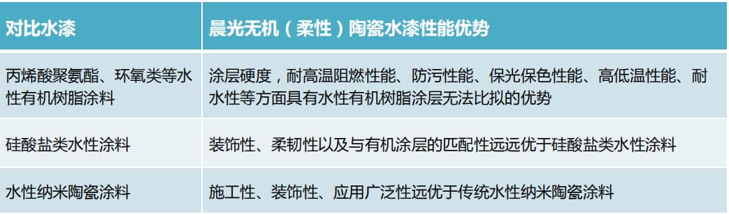 据晨光涂料的总工程师陈子辉博士介绍,晨光无机陶瓷水漆总体性能优势主要体现在: