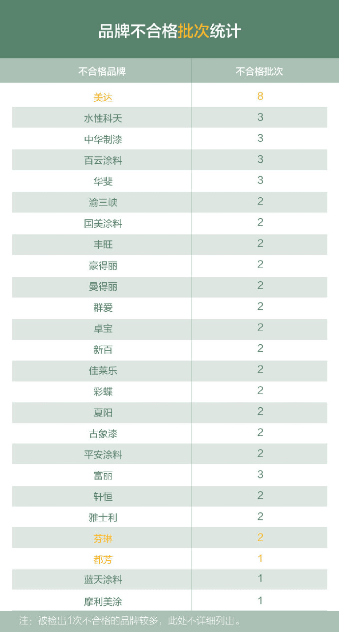 另外,多款乳胶漆都通过300次的耐洗刷性测试。若耐洗刷性不达标,在使用中会造成产品的使用寿命缩短,出现墙面脱层、掉粉等现象。