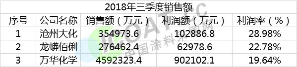 而作为国内最大的TDI企业,沧州大化同样对于国内TDI市场具有极强的语话权,据涂料采购网了解,沧州大化以28.9%的利润率名列前茅,前三季度利润额10.2亿。平均每天的利润额达到377万元。