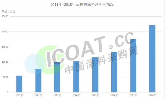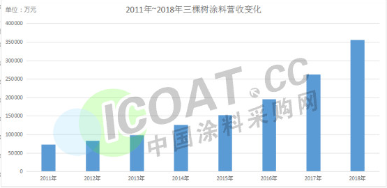 据涂料采购网消息,近日,国内民营涂料企业第一股三棵树股份,作为中国建筑涂料行业的引领者,在2018年发展迅猛,取得了众多成就。经济上保持高速增长态势、收入及利润三年时间实现翻番,2018实现营业收入35.61亿元,较上年同期增长35.96%,净利润达2.22亿元,较上年同期增长25.97%。