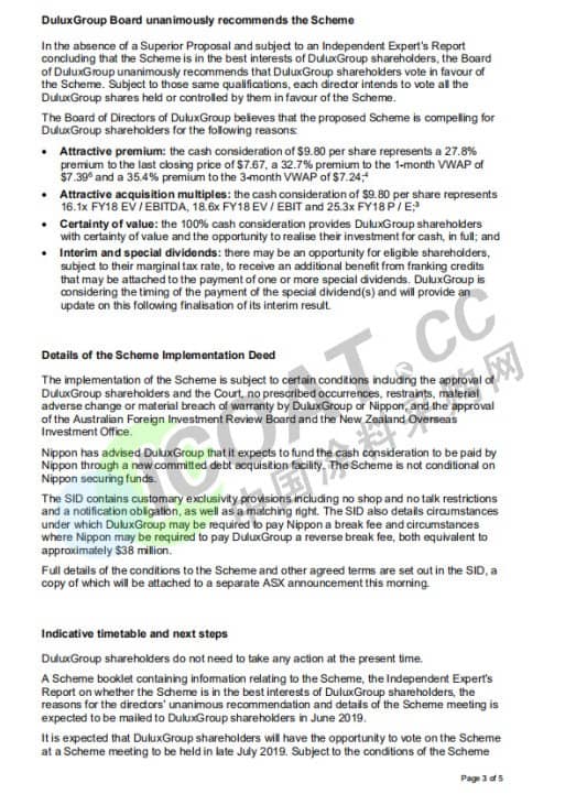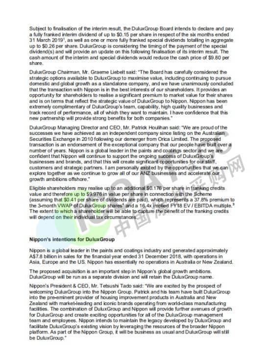 日本对DuluxGroup的意图