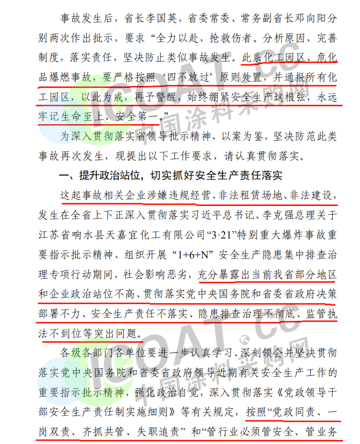 事故发生后,安徽省省长李国英,省委常委、常务副省长邓向阳分别两次作出批示,要求“全力以赴,抢救伤者。分析原因,完善制度,落实责任,坚决防止类似事故发生。此系化工园区、危化品爆燃事故,要严格按照‘四不放过’原则处置,并通报所有化工园区,以此为戒,再予警醒,始终绷紧安全生产这根弦,永远牢记生命至上、安全第一。”
