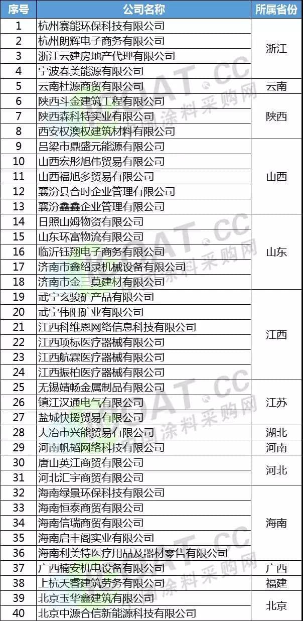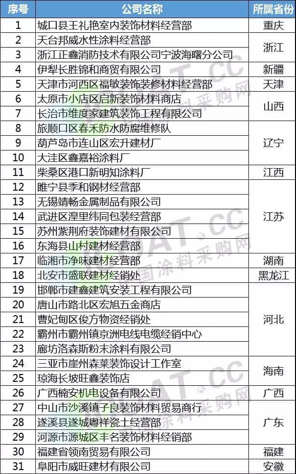 部分涂料企业注销名单