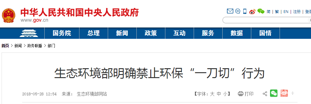 针对在以往环保督察过程中出现的各种“一刀切”行为,为防止一些地方在督察进驻期间不分青红皂白地实施集中停工停业停产行为,影响人民群众正常生产生活,生态环境部专门研究制定《禁止环保“一刀切”工作意见》,明确要求,严格禁止“一律关停”“先停再说”等敷衍应对做法,坚决避免集中停工停业停产等简单粗暴行为。