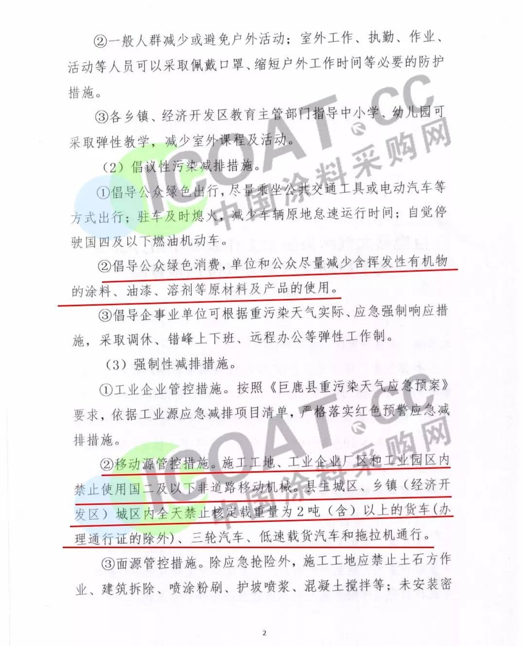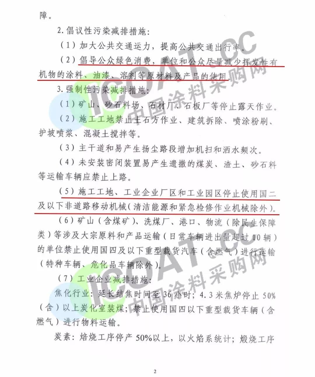 据涂料采购网了解,近期除了以上河北、山西、山东、河南等省市地区之外,还有不少地区陆续发布了重污染天气预警,部分地区启动了应急响应,要求施工工地全面停止喷涂粉刷、护坡喷浆等,对VOCs实施减排工作,对于化工等涉尘涉气企业也做出了相应的减排措施和规定。(涂料采购网)