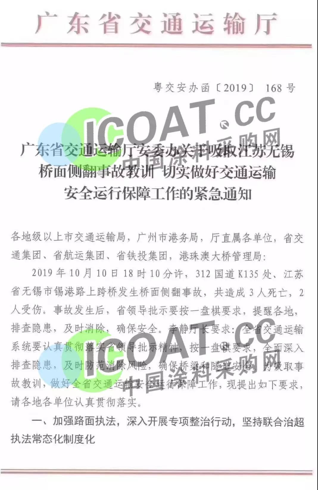 广东省交通运输厅安委办也发布紧急通知,要求各地级以上交通运输局及各部门单位吸取江苏无锡桥面侧翻事故教训,切实做好交通运输安全运行保障工作。并加强路面执法,深入开展专项整治行动,紧盯重点车辆,继续推进全省国省道非现场执法工作。
