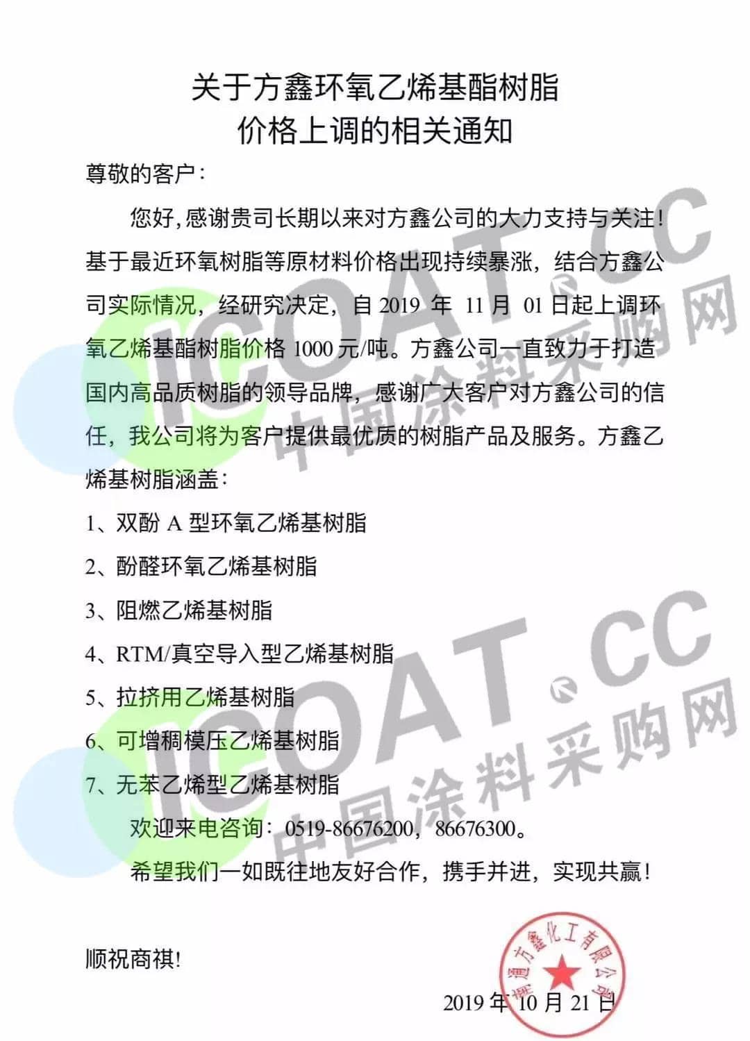 10月17日部分环氧树脂企业发布通知称,因环氧氯丙烷供应紧张,价格持续上涨,对企业的运行造成了很大的影响,因此即日起开始限量供应。而在此前一天,10月16日安徽歙县循环经济园区也曾发布通知称集中脱盐强制循环泵预估计要停产4天左右。据安徽歙县某环氧树脂企业负责人称,之前确实有出现停产情况,但现在已经恢复正常生产,其还称停产期间也在正常接单和发货。 据涂料采购网了解,就安徽黄山地区来说,歙县环氧树脂企业的数量占黄山总数的65%左右,因此歙县的此次短暂的停产,对于环氧树脂的市场总量来说,还是造成了一定的影响。但这种影响似乎并没有传导到下游伟德客户端官网等企业,原因是大型企业通常都有一定量的囤货,且为了合作事宜,环氧企业也大多会把货物优先供给大型企业,而对于小企业来说,则会出现不同程度的限产。某环氧树脂企业负责人表示,会尽量保证供应正常,凡是前期合同约定好的都会保证供应,价格会根据具体情况采取一定的变化措施(涨价),因此总的来说,环氧树脂对于其下游的伟德客户端官网、电子、复合材料等企业并没有造成什么连锁的影响。 环氧树脂原料企业陆续进入停产季,11月份价格将继续飙涨 那么环氧树脂企业涨价究竟是什么原因呢?又会不会继续涨价呢?据业内人士称,时值年底,近期东营联成,东营赫邦,以及环氧树脂龙头企业江苏扬农等企业均有检修计划,部分已经停车检修,预计近期价格下跌可能性不高。 除了本月20日开始的江苏长春一条线环氧树脂压力管道检测到11月底外,本月底南通星辰因园区蒸汽问题降负荷,11月1日全线停车检修半月多,预计11月18日出产品;扬农锦湖计划检修延期到11月7日,停产检修十天,与南通星辰几乎同时出产品,开机后可能只有50%的负荷直至年底(安全整改)。在这期间,有其他可能的突发事件造成停产忽略不计。目前各厂都开着尚且供货紧张,届时三四家工厂停产断供,可能会影响市场供需平衡。 据山东海力相关负责人表示:目前山东海力正处于检修期,复产时间还没有确定。再结合南通星辰、扬农锦湖等环氧氯丙烷企业11月份的检修计划,市场供应还会出现一定程度的紧张局面。 某化工企业负责人表示,目前环氧树脂毛利约4000元/吨,近期环氧树脂的涨价情况属于供给端涨价,亚洲最大环氧氯丙烷企业山东海力已经停产了一段时间,直接导致环氧氯丙烷的市场供给出现紧缺的状况。至于年末的检修,基本也属于正常情况,不会造成太大的影响,他们行业内部也有不少人猜测,近期的大规模涨价是否是有人在炒作。现在的环氧树脂已经是一天一个价,随着年末临近,预计11月起,价格还会继续提高。 据某环氧树脂企业负责人称,目前他们的库存量较少,不仅是企业,而是整个环氧树脂的市场库存都较少,前期有部分下游企业已经定了许多环氧树脂,但工厂出货紧张还有很多订单没有生产出来,导致有订单无现货,连一些大厂子也出现捉襟见肘的情况,纷纷开始惜售。他表示环氧树脂不仅数量会变得很紧张,价格也会在11月份开始大量涨价,至于下游企业会不会照单全收,亦或是市场遇冷,就无从得知了。