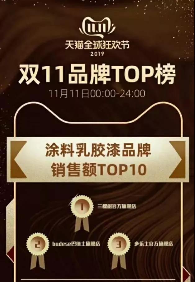荣登双11涂料乳胶漆品牌销售额 NO.2