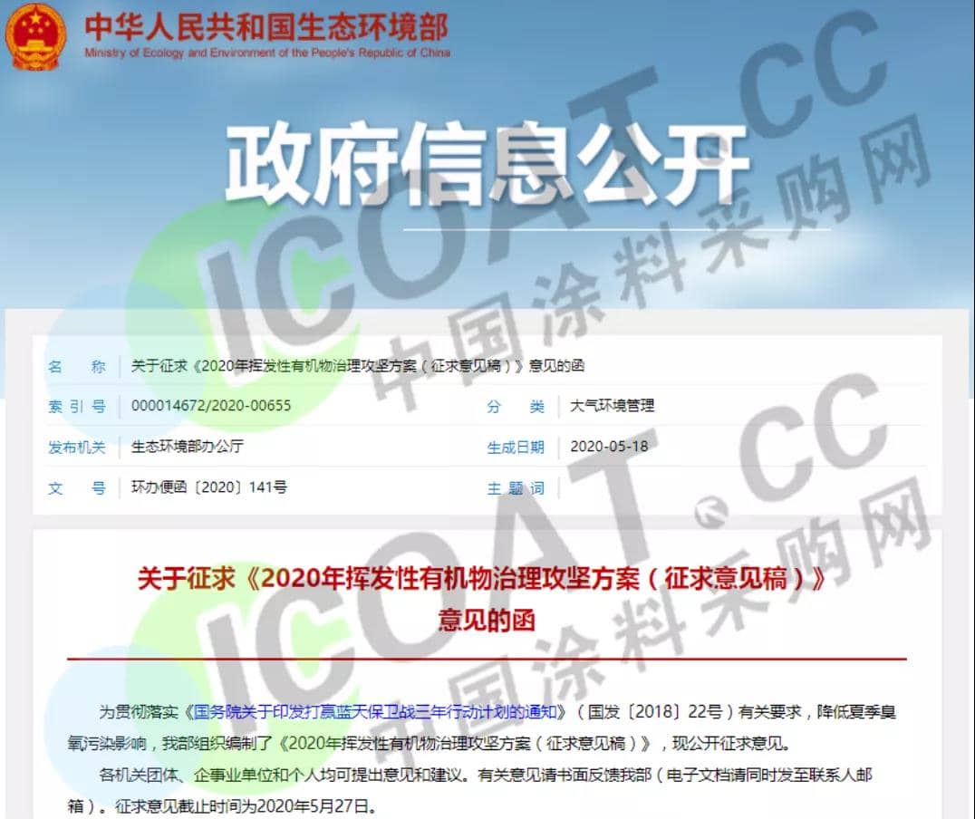 此次生态环境部发布的《2020年挥发性有机物治理攻坚方案(征求意见稿)》更是明确了涂料、涂装、喷涂等企业的未来发展方向,推动了低VOCs排放的非溶剂型涂料逐渐普及,也压缩了溶剂型涂料的生存空间和使用范围,并要求通过采取综合措施,切实提升VOCs治理能力,实现VOCs排放量明显下降,有效遏制夏季O 3污染,有效保护生态环境。