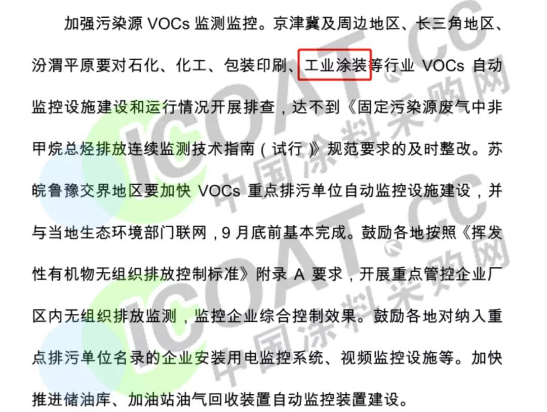 加强污染源VOCs监测监控。京津冀及周边地区、长三角地区、汾渭平原要对石化、化工、包装印刷、工业涂装等行业VOCs自动监控设施建设和运行情况开展排查,达不到《固定污染源废气中非甲烷总烃排放连续监测技术指南(试行)》规范要求的及时整改。