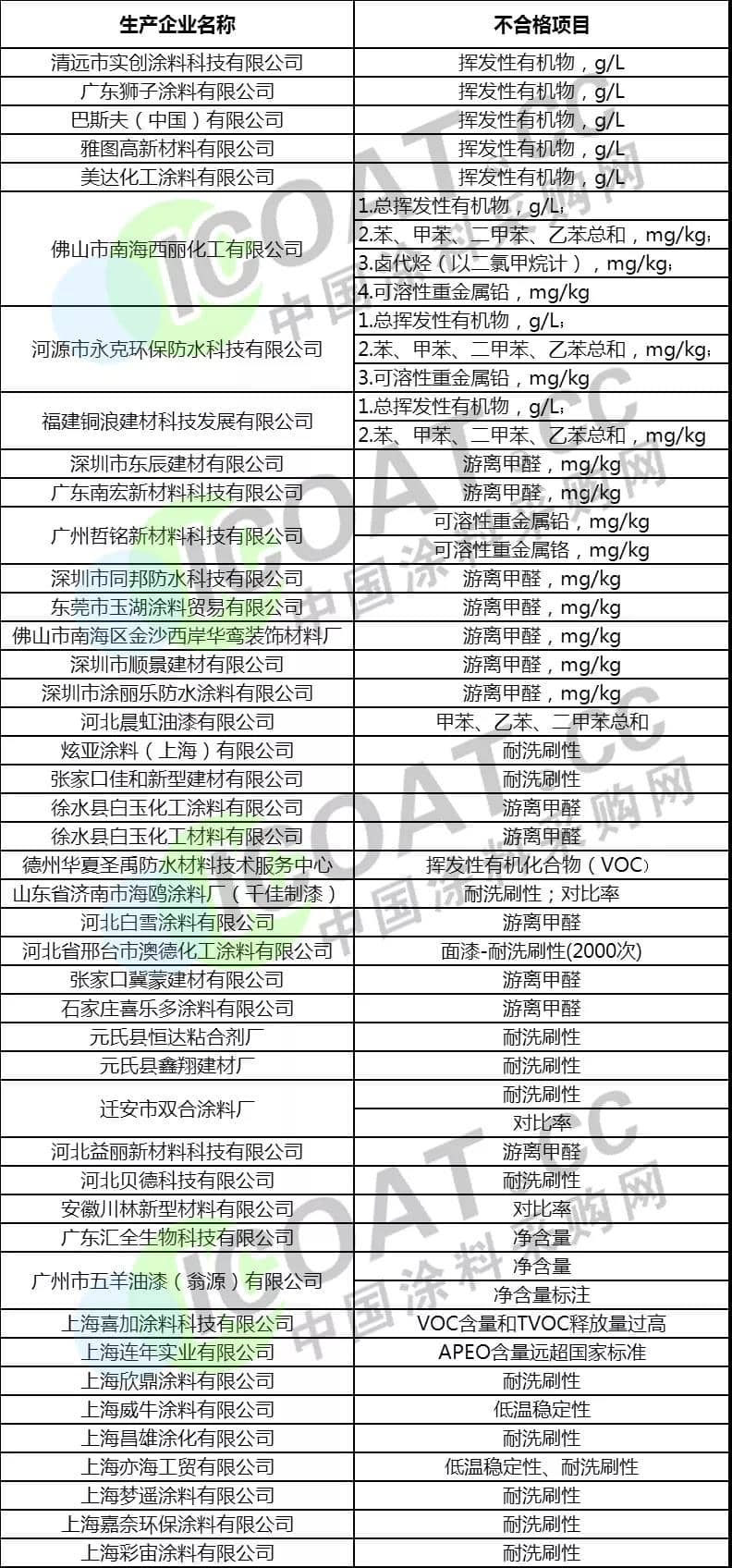 在涂料行业,高质量发展将是涂料行业做强的必经之路,但是几乎每次的质量抽查都会发现很多涂料产品质量不合格,这里面包括了技术、质检等各个环节的问题。据涂料采购网了解,2020年开年至今,涂料行业一些质量不合格的生产企业抽查结果如下: