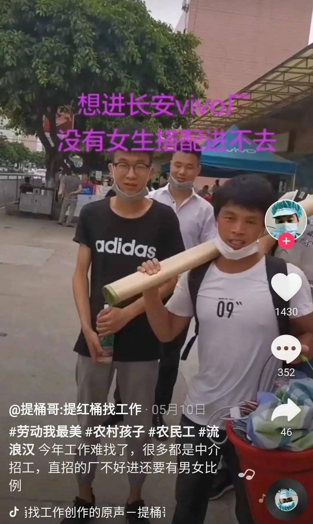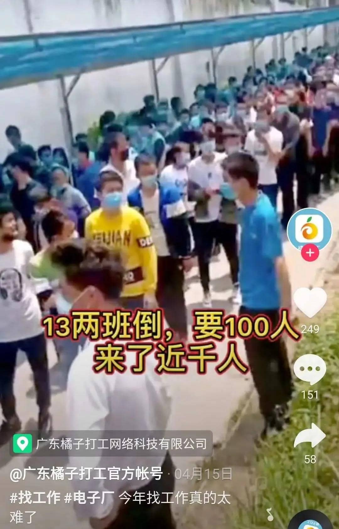 众多严苛的要求被一一列举,却没有言明工作的性质、内容和工资待遇。而对面的众多打工者,戴着口罩,拖着行李,默不作声的听着这些要求,似乎若有所思,不知道自己能否找到工作,解决当天的伙食问题。