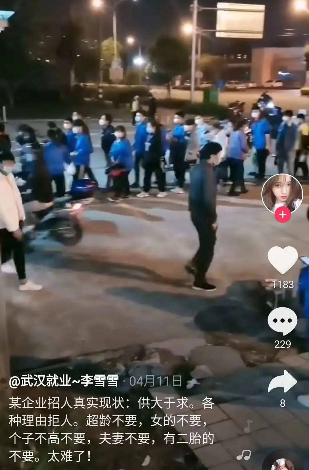 另有网传视频显示,武汉有大批年轻人排长队等着辅警招聘,网民纷纷感慨就业形势严峻。