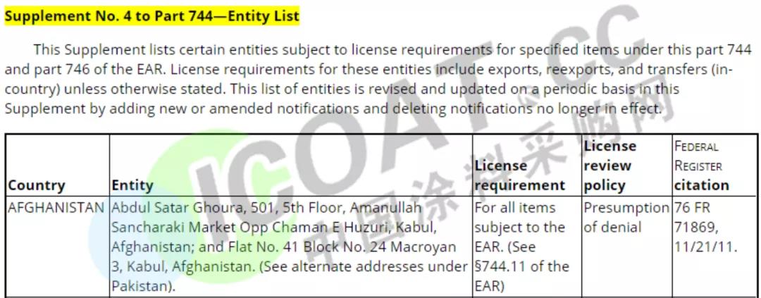 (图源:Supplement No. 4 to Part 744—Entity List )