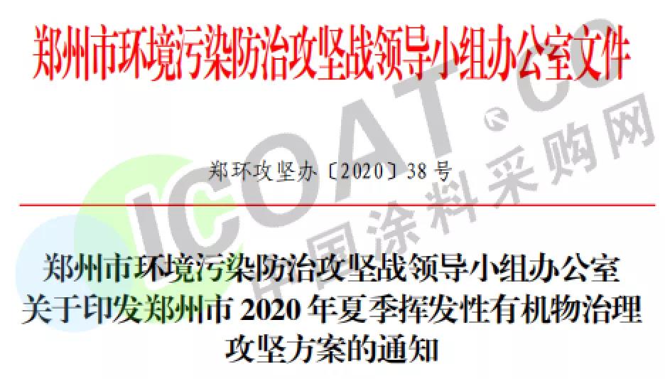 下发《2020年夏季挥发性有机物治理攻坚方案》,从6月起到9月,郑州市将开展夏季挥发性有机物治理攻坚行动,使全市VOCs排放超标现象显著减少。