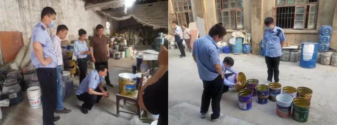 在一处虚掩仓库内,又陆续查获印有“多乐士”等知名品牌商标的涂料空桶近2000个,检查人员还从垃圾桶中搜查到数十本进销货账簿。经初步鉴定,当事人生产销售的空桶、成品涂料涉嫌侵犯多个品牌的注册商标专用权。因涉案金额较大,该案已移交公安部门处理。