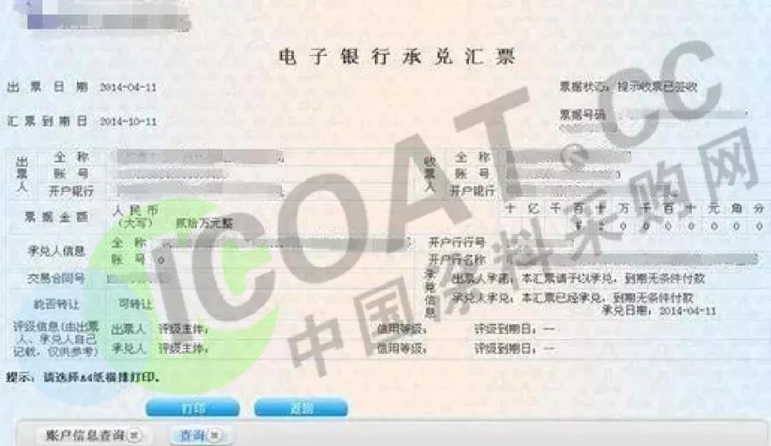 据涂料采购网不完全统计,目前市场上流通的假承兑汇票保守估计也有一百多亿元,让企业防不胜防。