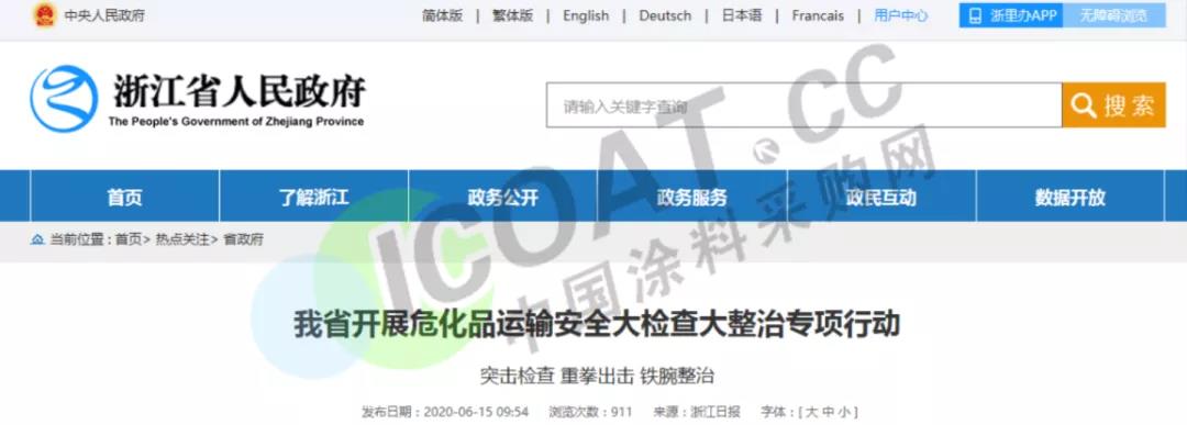 6月14日下午,浙江省政府召开全省危化品道路运输行业安全管理紧急工作会议,要求各级交通运输系统领导要深入一线督导,突击检查、重拳出击、铁腕整治,迅速开展危化品运输行业安全大检查大整治专项行动,全面查找薄弱环节,严防再次发生此类事故。