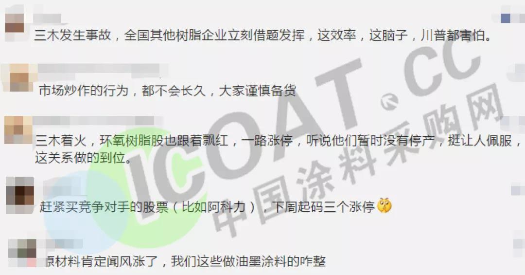 事故的处理程序自然要按照法律法规来执行,但由于一直没有官方通报公示,行业人士对于事故的讨论热度持续,且有愈演愈烈之势。毕竟三木化工在树脂行业位居龙头地位。