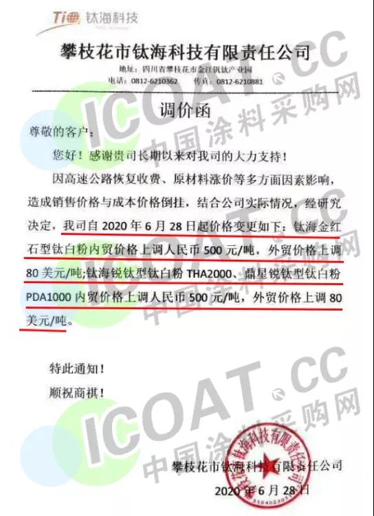 这个涨价函的出现似乎很突兀,让人有些匪夷所思,钛白粉从今年4月开始,就一直跌跌不休,突然市场出现了 “涨价函”,不禁让业内突生疑惑,是市场回暖了?还是市场炒作行为?