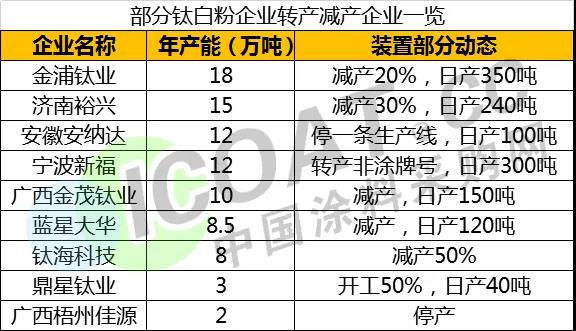 自7月份起,金浦钛业、济南裕兴、宁波新福等钛白粉企业会实施转产、减产等措施,减产比例在20%-50%之间,甚至有停产的情况出现。