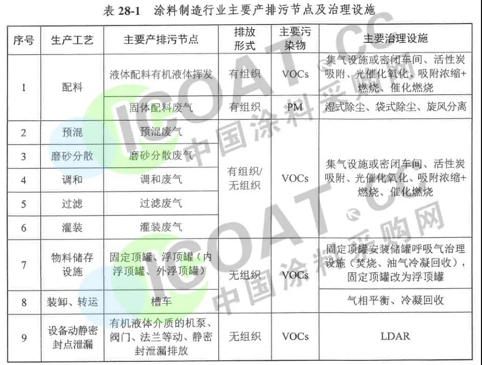 (2)VOCs:主要来自配料、预混、磨砂分散、调和、过滤、灌装、物料储存设施、装卸、转运、设备动静密封点泄漏等工序。