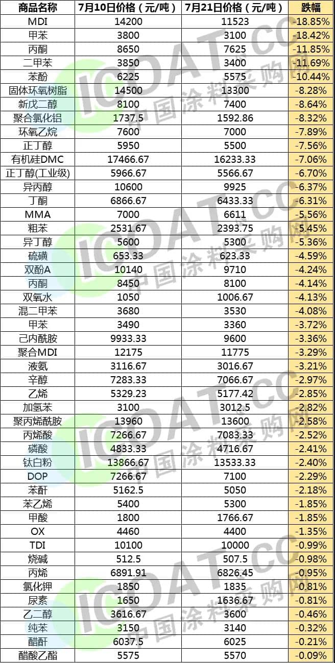 (以上数据来源于涂料采购通,如有差池,请以实际数据为准)