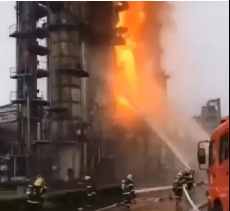 7月18日7时06分,南京市栖霞区南京经济技术开发区尧新大道201号金桐石化有限公司发生火灾,是由精馏塔失火引发。
