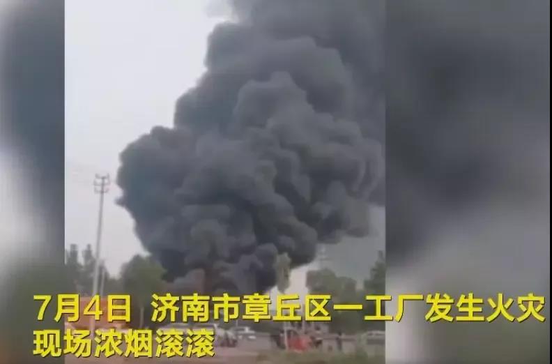 7月4日,济南东部一涂料企业发生火灾,现场浓烟滚滚。