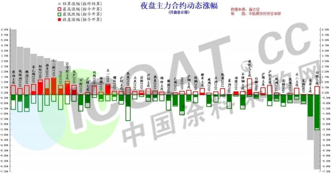 受到美布两油暴涨的提振影响,11月9日,国内期货夜盘化工板块大涨,燃料油涨超4%,短纤、沥青、PTA涨逾3%,郑棉、PP涨逾1%,英国石油、道达尔涨逾15%,埃克森美孚涨超12%,中海油涨超11%。部分原材料价格持续拉涨,封盘不报价,甚至创下多年新高点。