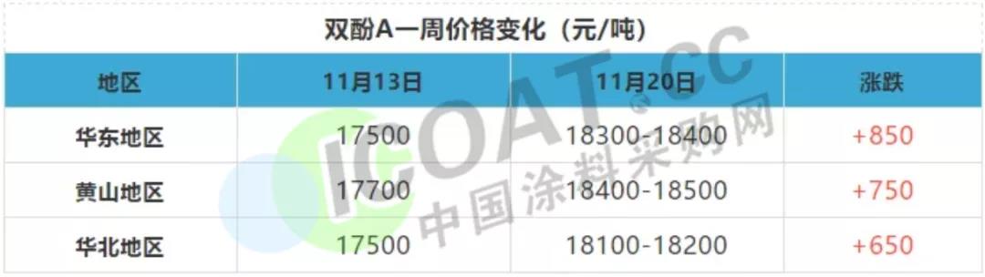 20日,双酚A华东区域报价18300-18400元/吨,较前一周上调850元/吨,黄山地区报价18500元/吨,较前一周上涨750元/吨。