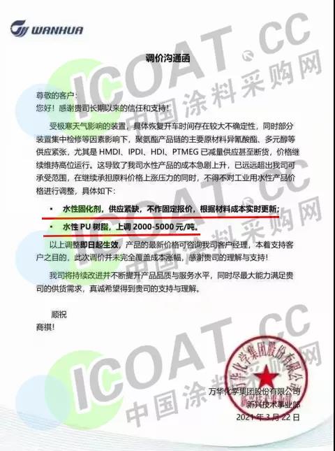 万华化学:水性PU树脂,上调2000-5000元/吨。