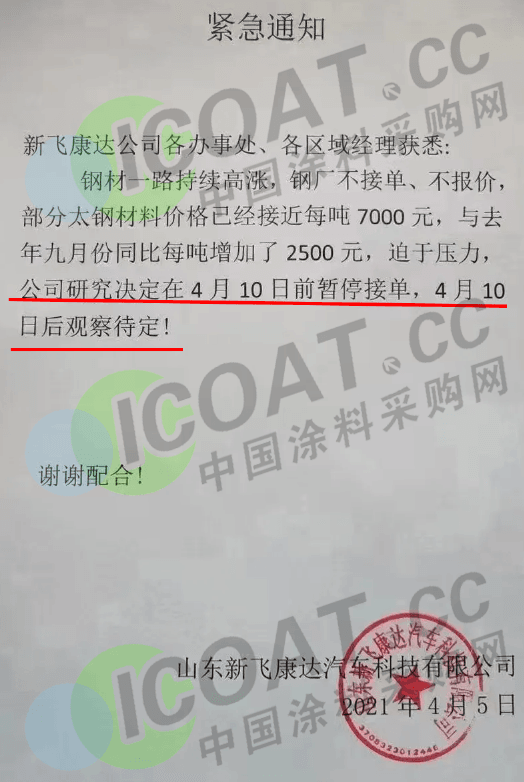 梁山通泰车业有限公司、山东新飞康汽车科技有限公司、梁山华岳专用汽车制造有限公司等汽车企业发布紧急通知,称由于钢材价格上涨,厂家不接单不报价,部分钢材价格已经接近7000元/吨。钢材料缺货导致无法正常生产,决定于4月10日前暂停接单。那么上游钢材的市场是否真的这么紧俏呢?