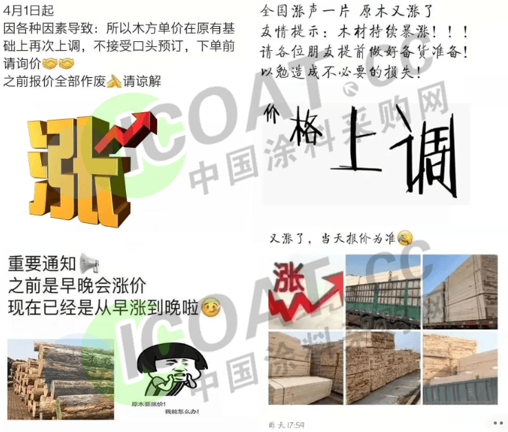 业内人士分析,由于疫情和天气原因,部分产材国减少了原木砍伐工作,供应减少,叠加海运费处于高位等因素所导致。进入三月,木材就以高价开局,随后一路飙升,三月木材价格经历十四连涨,三月份的木材行情可谓是历史之最,进入四月份,涨价依旧是主旋律……4月1日已有板材企业发布涨价信息,因原材料进口我国受到了影响,那么化工、木材等行业面临的,将不仅是涨价,更有可能是“断供”的严峻态势。