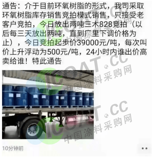 涂料采购网与众多化工企业沟通发现,这种情况在近期频繁出现,且不仅是环氧树脂,其他化工品的销售模式也进入到“竞拍”的价高者得模式。