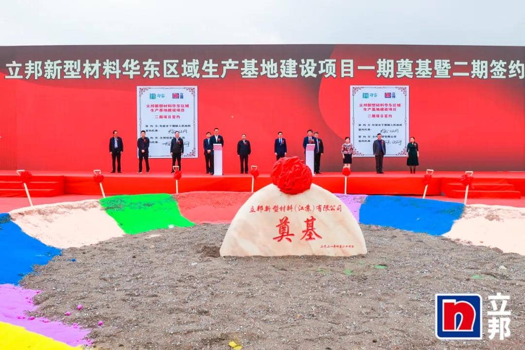 今天,我们相聚在福地句容、滨江下蜀,共同举行立邦新型材料华东区域生产基地建设项目一期奠基暨二期签约仪式,这是我们践行镇江产业强市“一号战略”、助推“三高一争”新实践的又一重大成果,也是我市接续打响产业强市的又一枪。